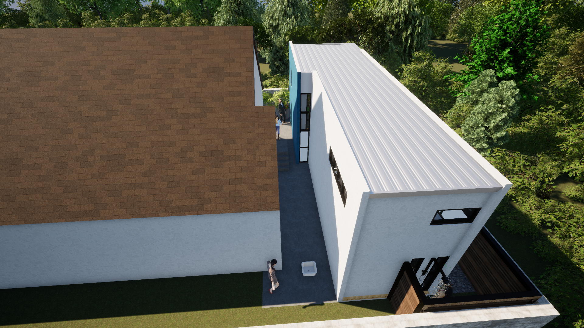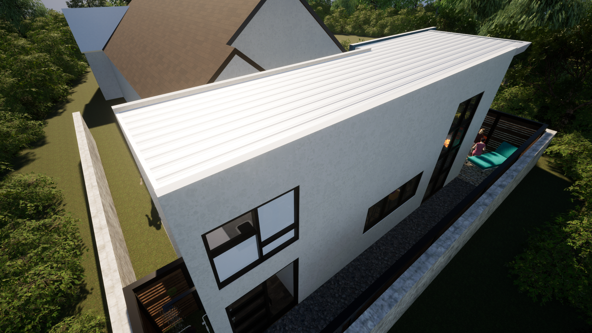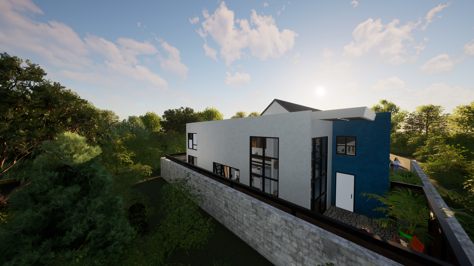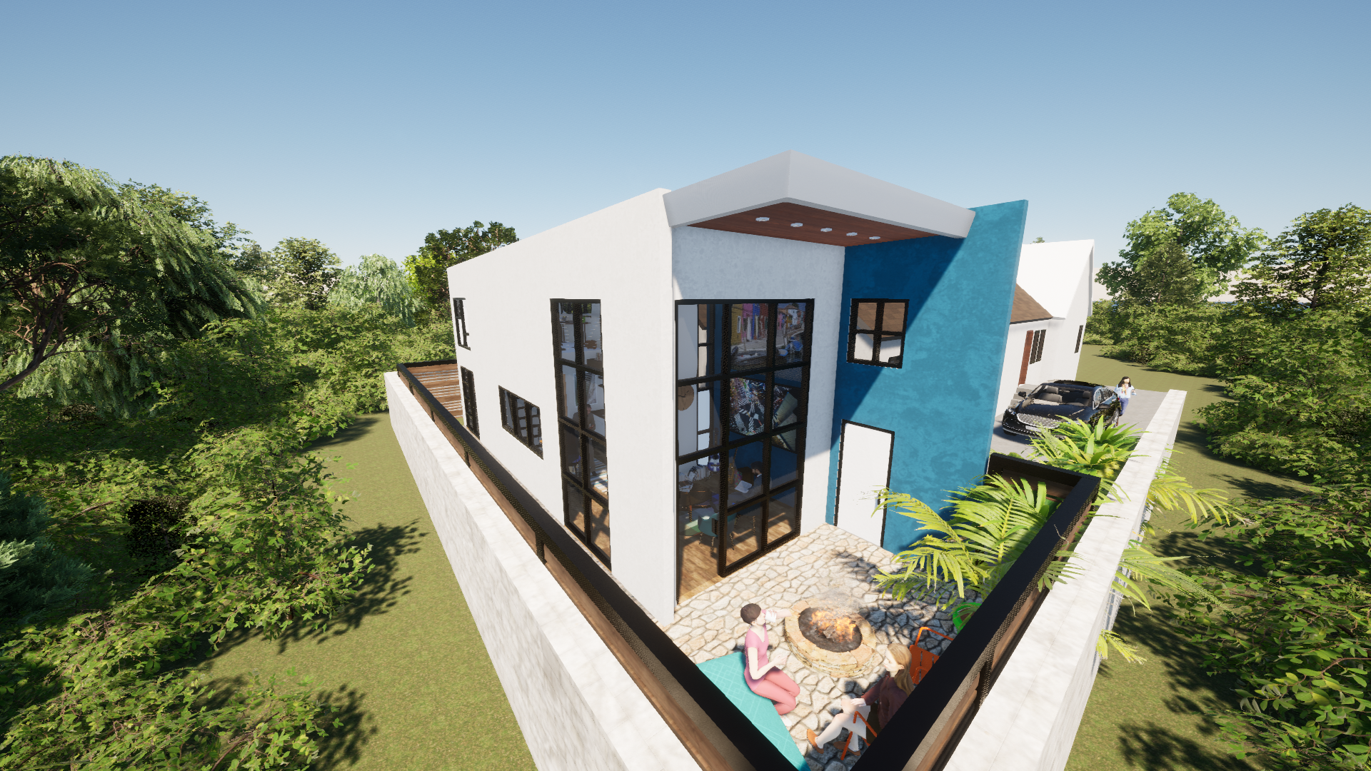 The design balances a modern architectural language with a contextual sensitivity to its surroundings. Clean lines, a restrained material palette, and carefully proportioned openings create a structure that feels contemporary while remaining grounded within the neighborhood fabric.