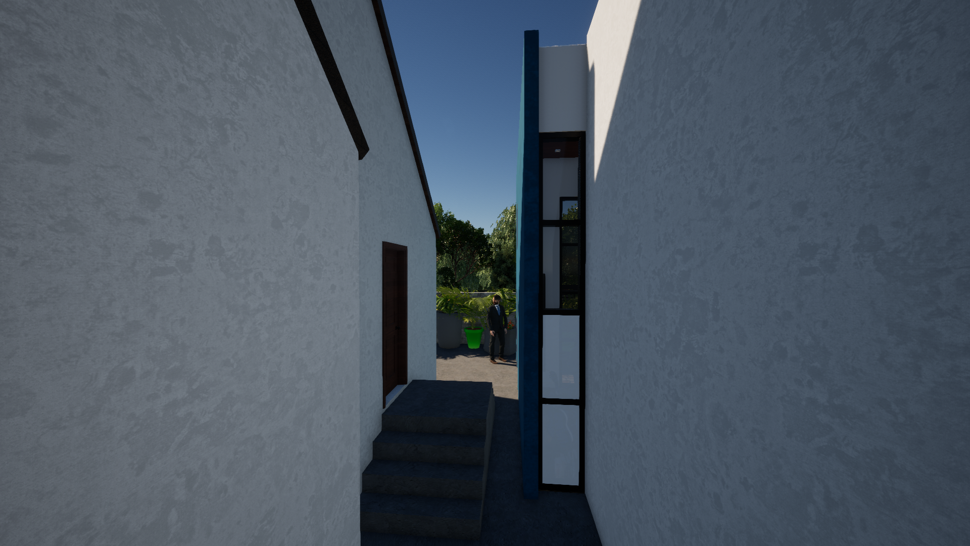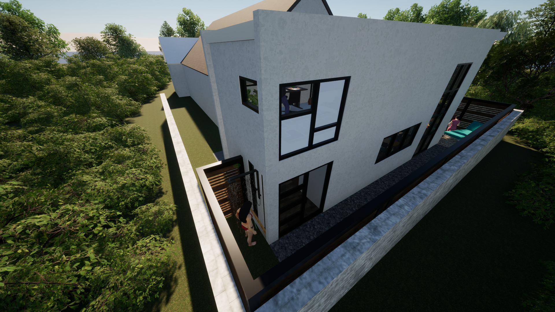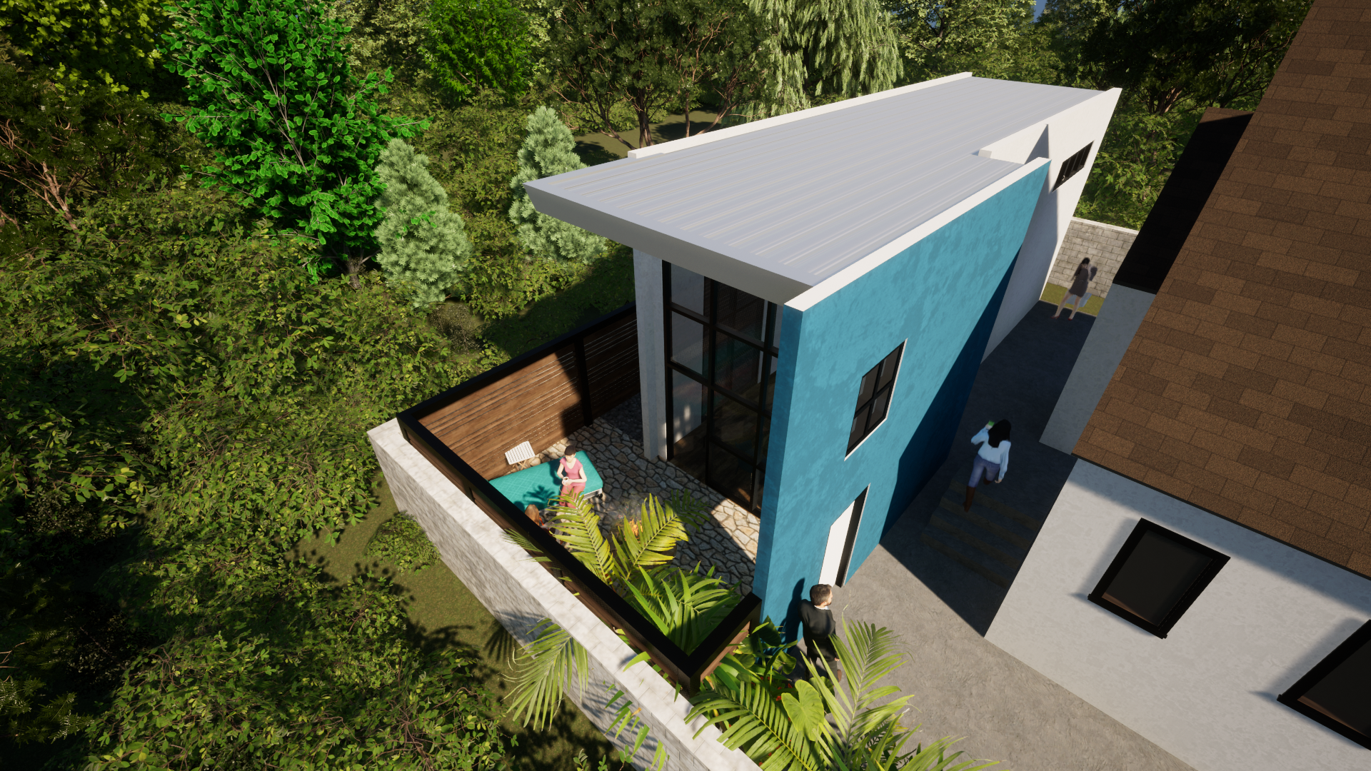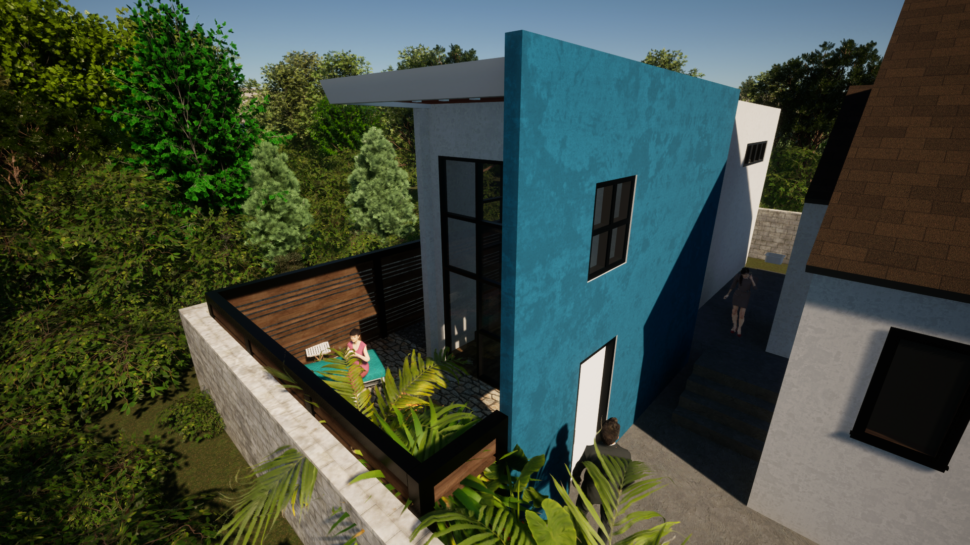 The design balances a modern architectural language with a contextual sensitivity to its surroundings. Clean lines, a restrained material palette, and carefully proportioned openings create a structure that feels contemporary while remaining grounded within the neighborhood fabric.
