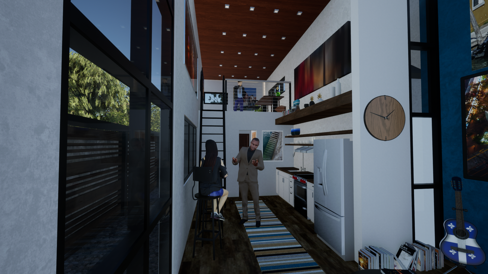 A defining feature of the project is the introduction of an open loft space positioned above the main living area. This vertical strategy expands usable square footage without increasing the building footprint, offering flexibility as a sleeping loft, home office, or creative workspace. The loft also enhances spatial volume, contributing to a greater sense of openness within the compact plan.