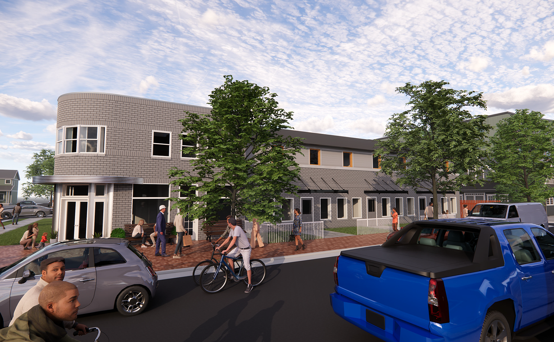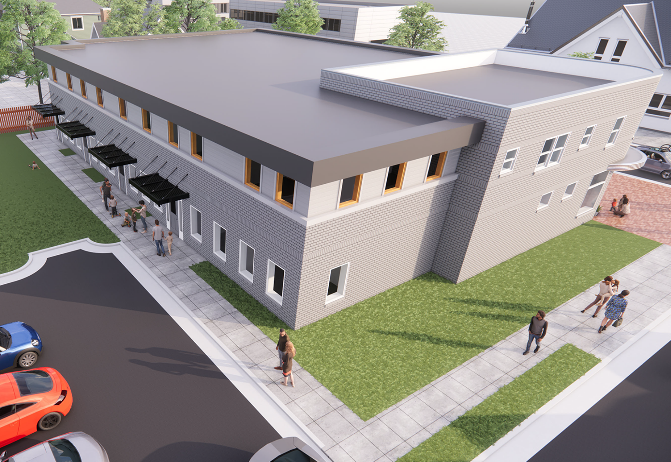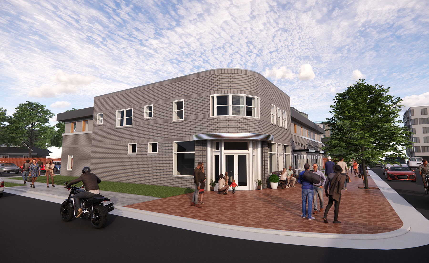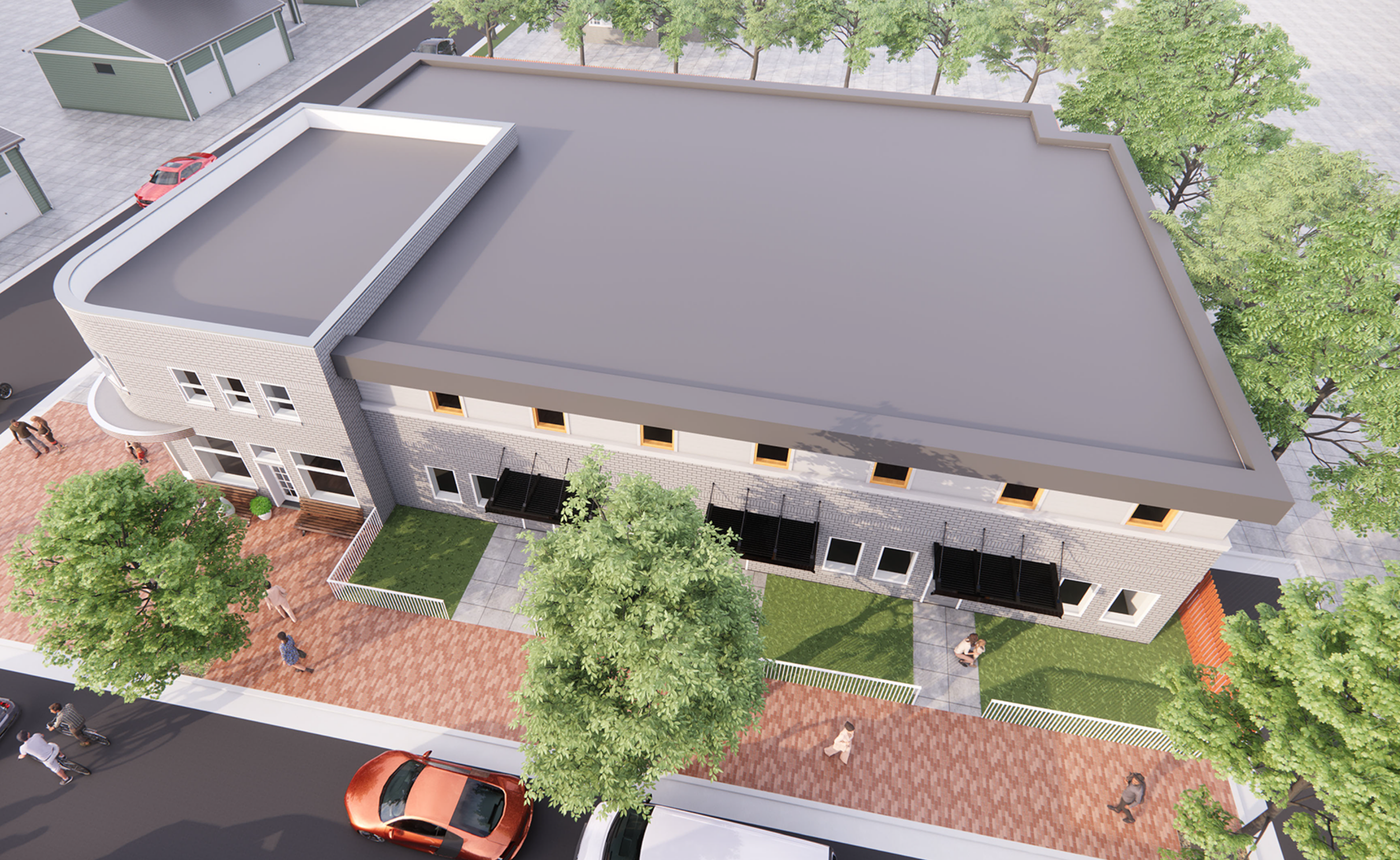 The historic façade has been restored and preserved as a key architectural anchor, while the new addition is carefully massed and articulated to complement the original building without imitation. The result is a cohesive composition that maintains the rhythm and scale of the surrounding neighborhood while clearly expressing its evolution.
