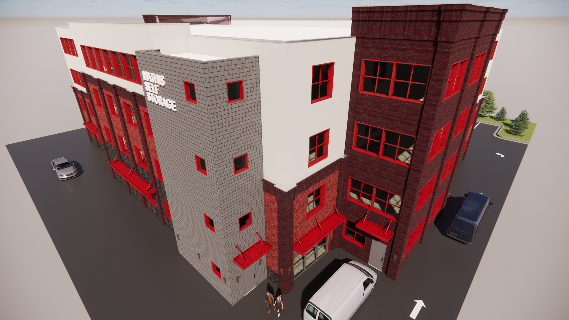 Loveless Porter Architects brought Rich Hostelley Architect on as Design Consultant to develop an exterior architectural vision for a new self-storage facility within a historic Old Town setting—transforming a traditionally utilitarian building type into a contextually responsive and visually integrated addition to the district.