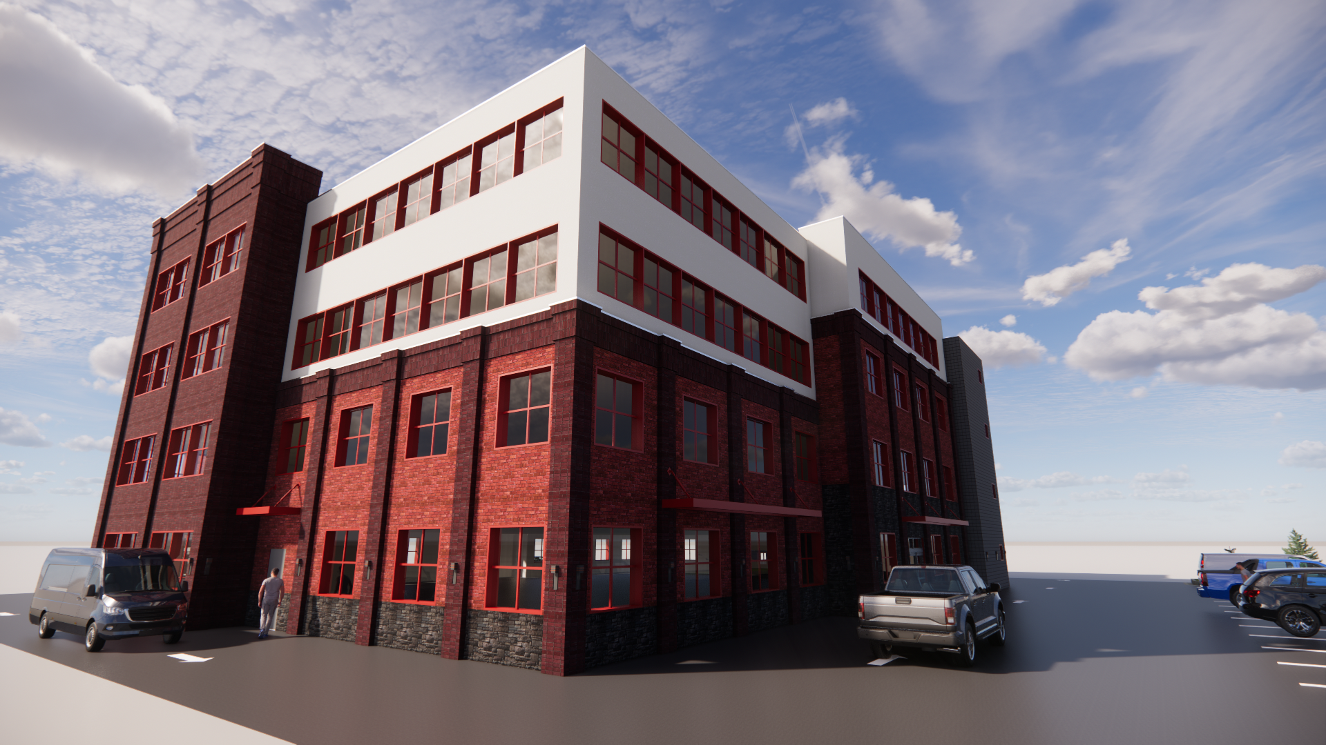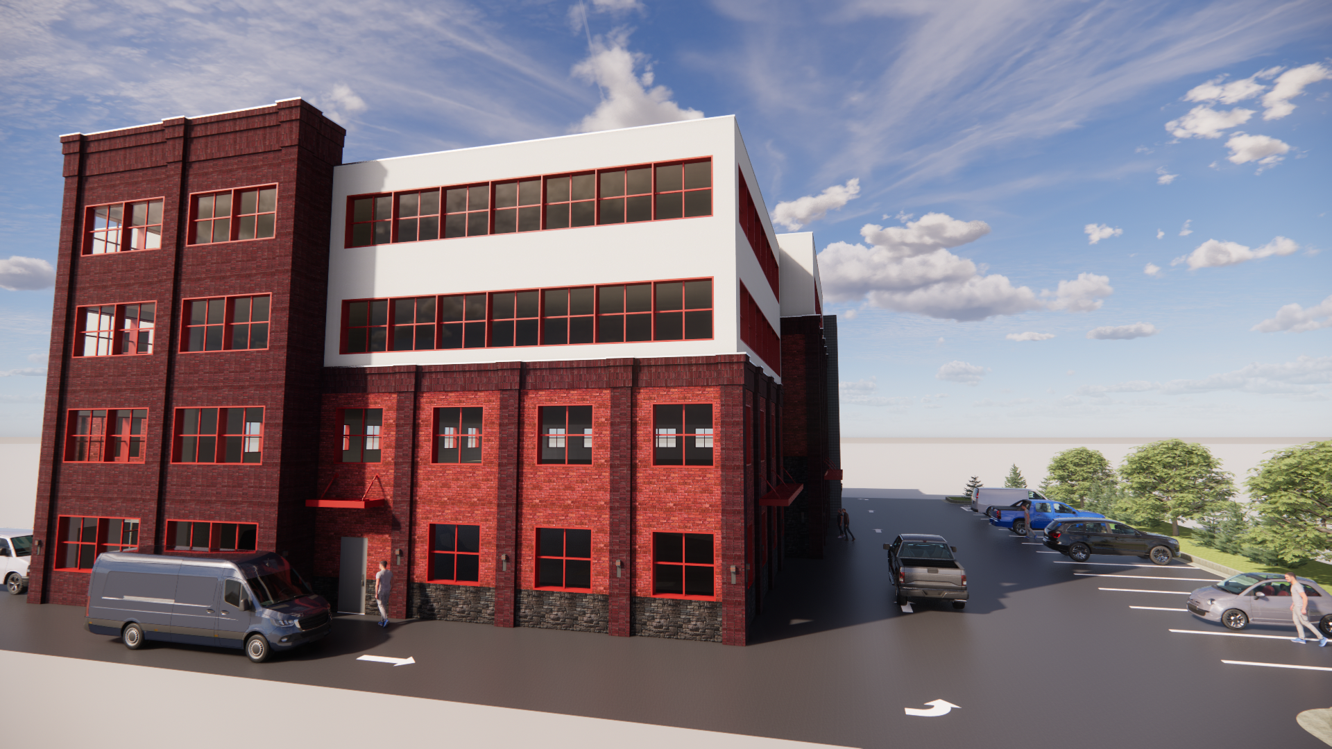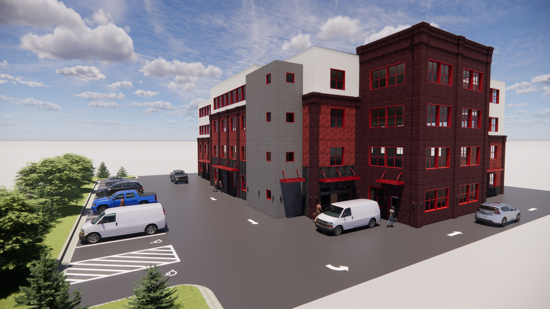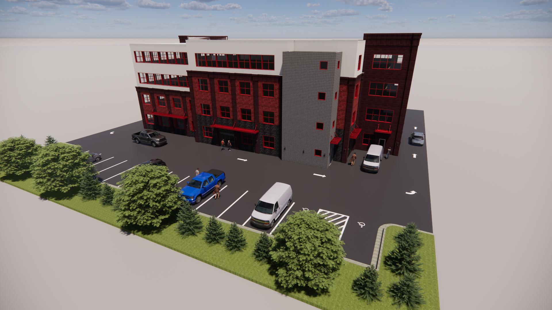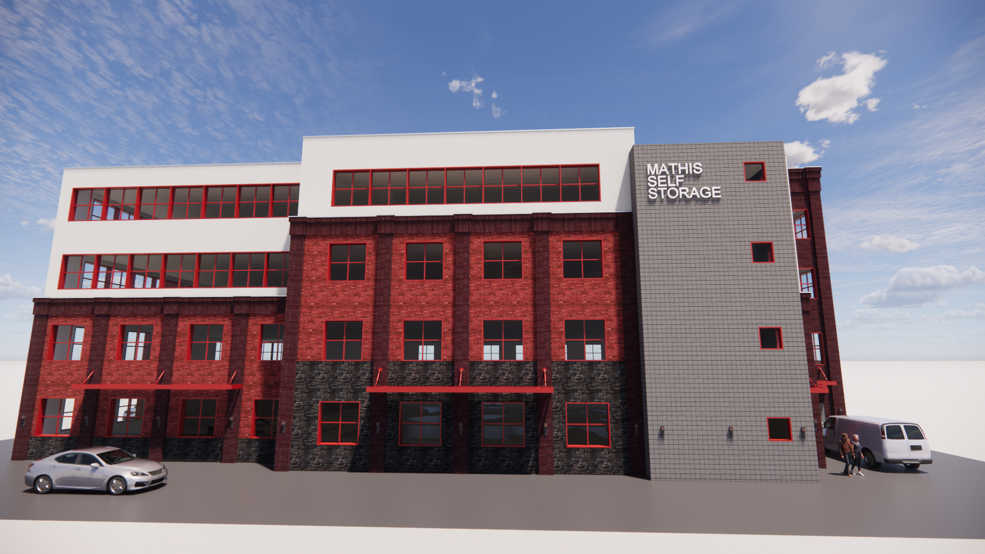 The design draws inspiration from early 20th-century warehouse architecture, referencing the industrial heritage common to many historic town centers. A composition of brick, EIFS, and strategically placed fenestration creates rhythm and depth across the façade, breaking down the scale of the building while reinforcing a familiar architectural vocabulary. Carefully proportioned openings and detailing introduce visual interest while maintaining the functional requirements of the facility.
