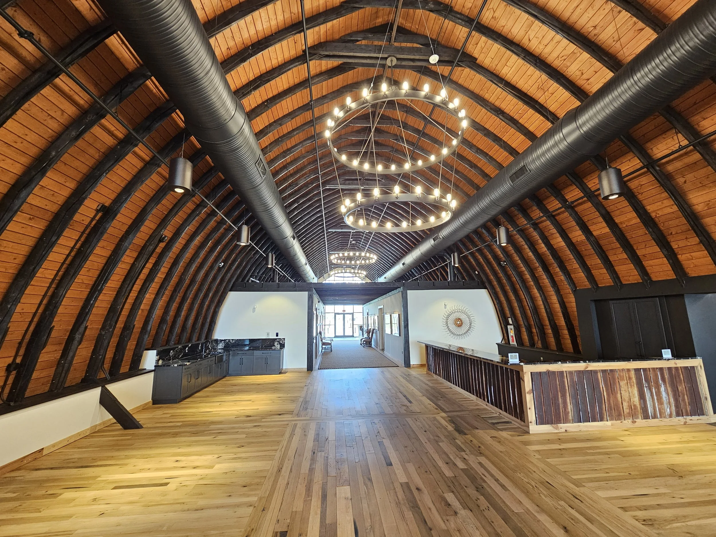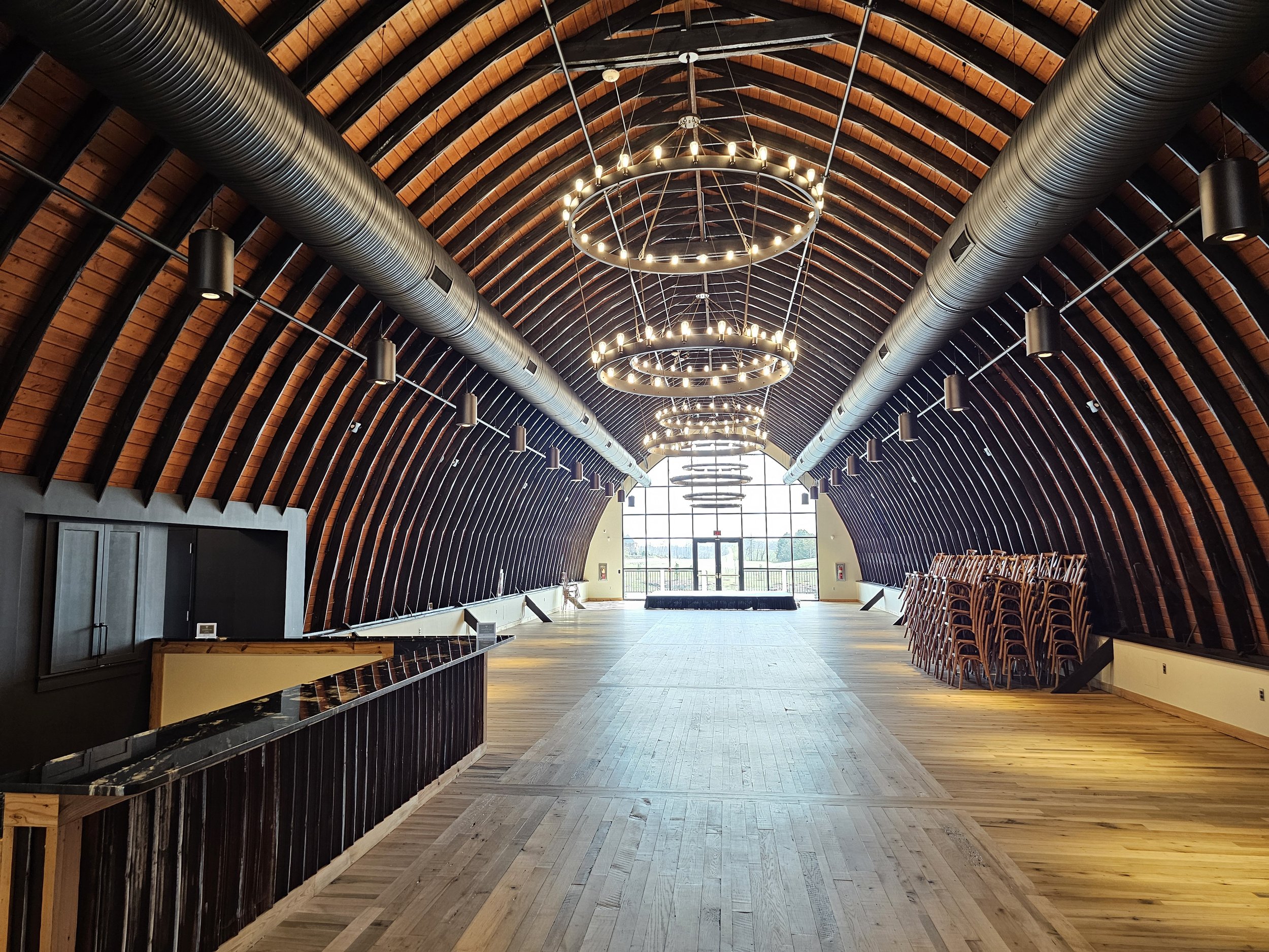 Rather than approaching the barn as a structure to be stripped and rebuilt, the team recognized its inherent character as the foundation for design. The existing arched timber framing became the defining architectural feature, anchoring the interior experience and informing the overall design strategy. Interventions were carefully calibrated to enhance functionality—supporting weddings, performances, and community events—while preserving the authenticity and craftsmanship of the original structure.