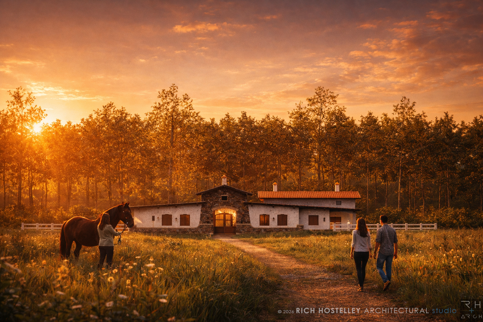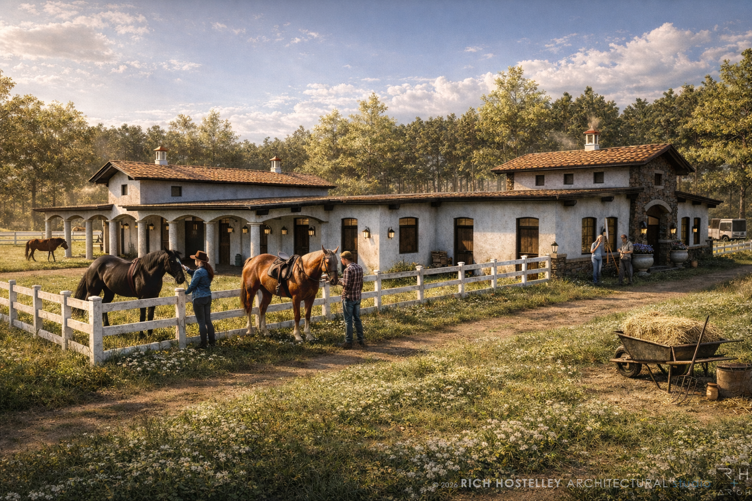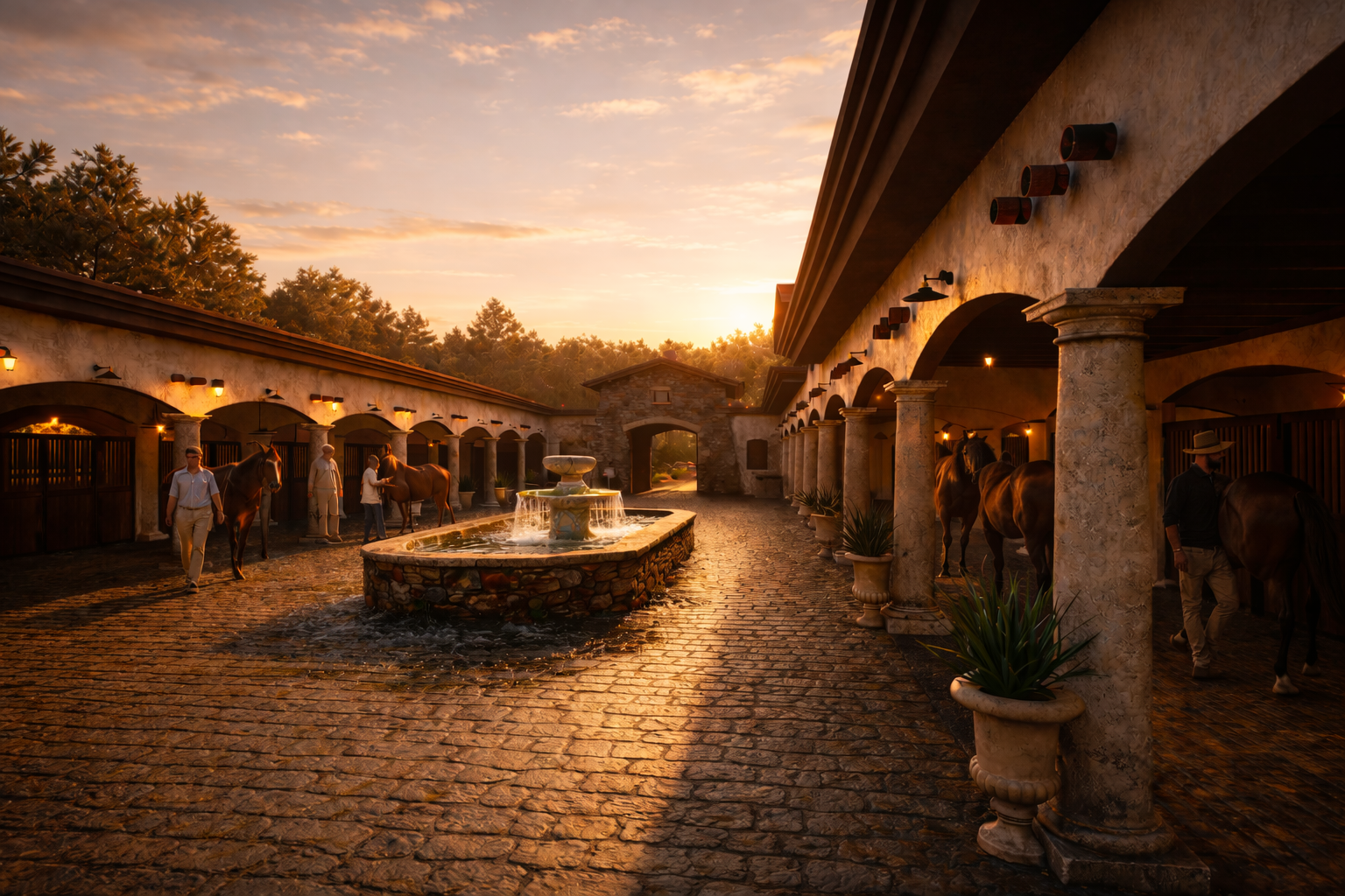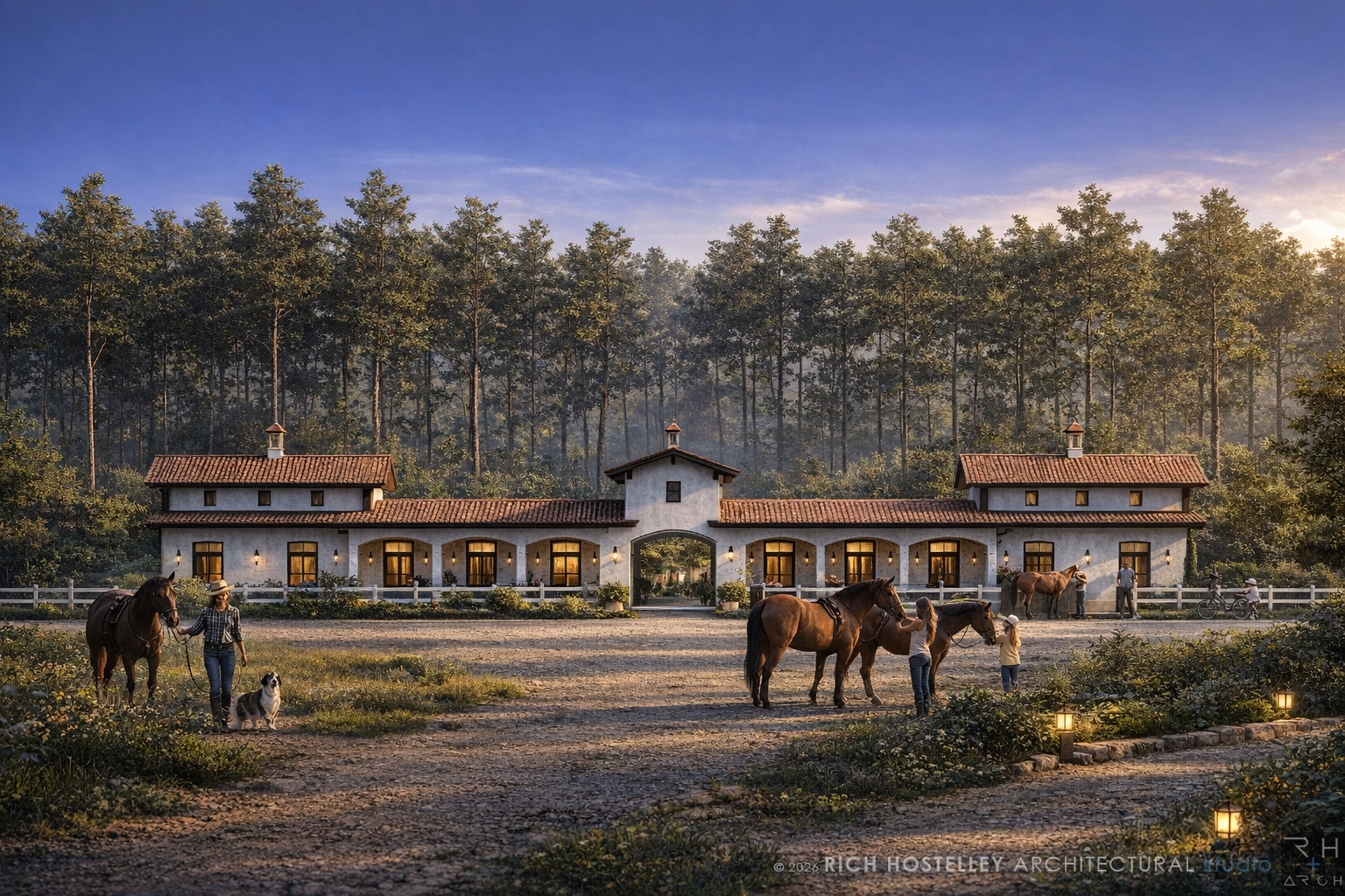 This courtyard-driven layout enhances natural light, ventilation, visibility, and overall daily flow—creating a healthier, more connected environment for both riders and horses.
