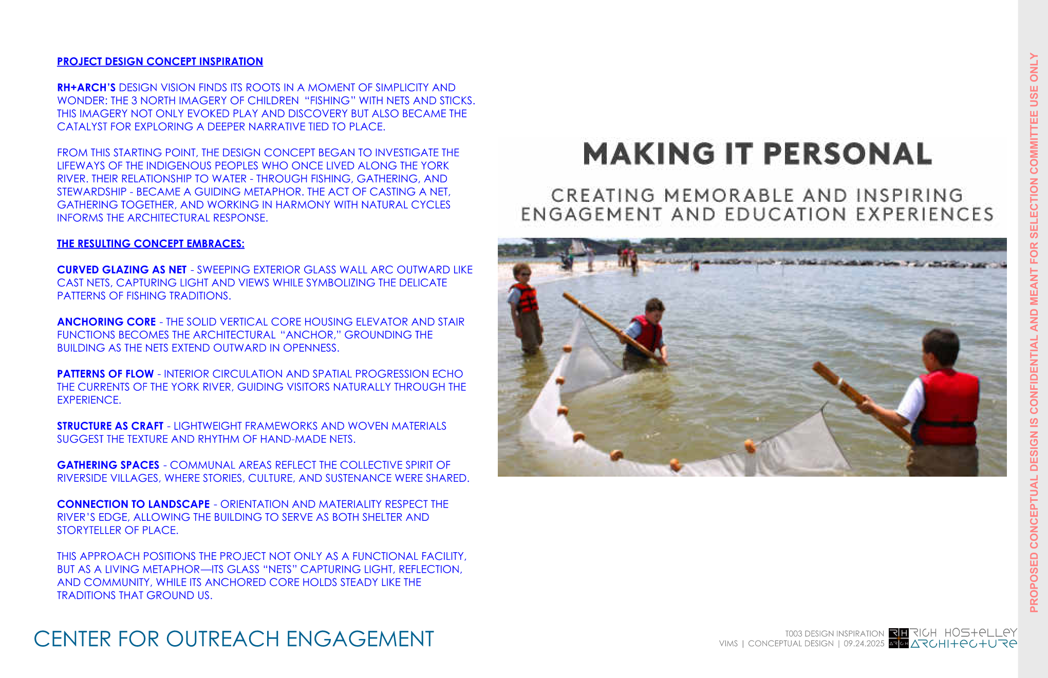 RH+ARCH’s design vision is rooted in a simple yet powerful image—children “fishing” with nets along the water’s edge. This moment of play and discovery became the catalyst for a deeper architectural narrative tied to place, culture, and connection.