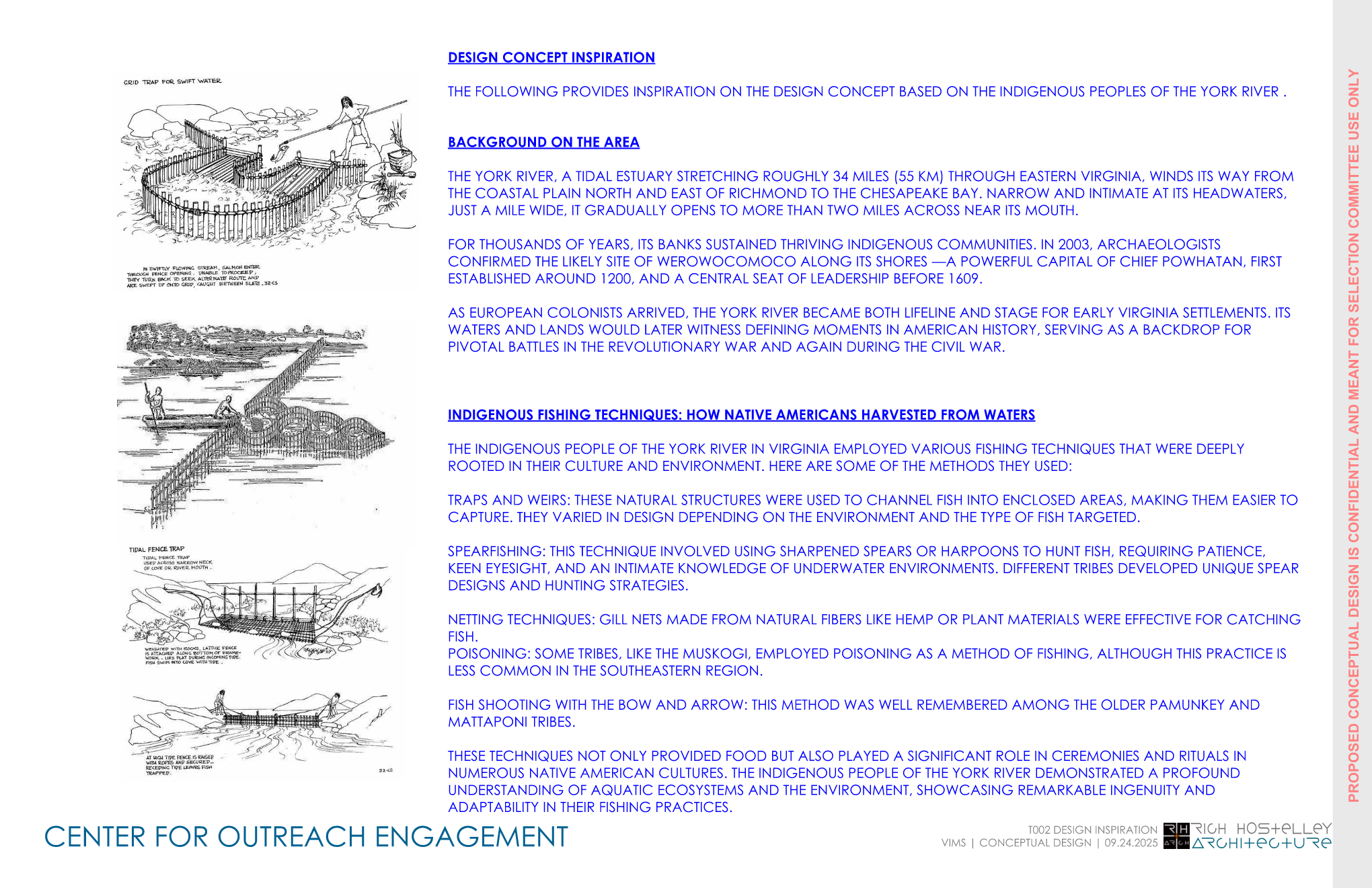 Inspired by the indigenous lifeways of the York River, the design draws from the act of casting nets, gathering, and living in rhythm with the water. These ideas are translated into a building that expresses movement, craft, and community.